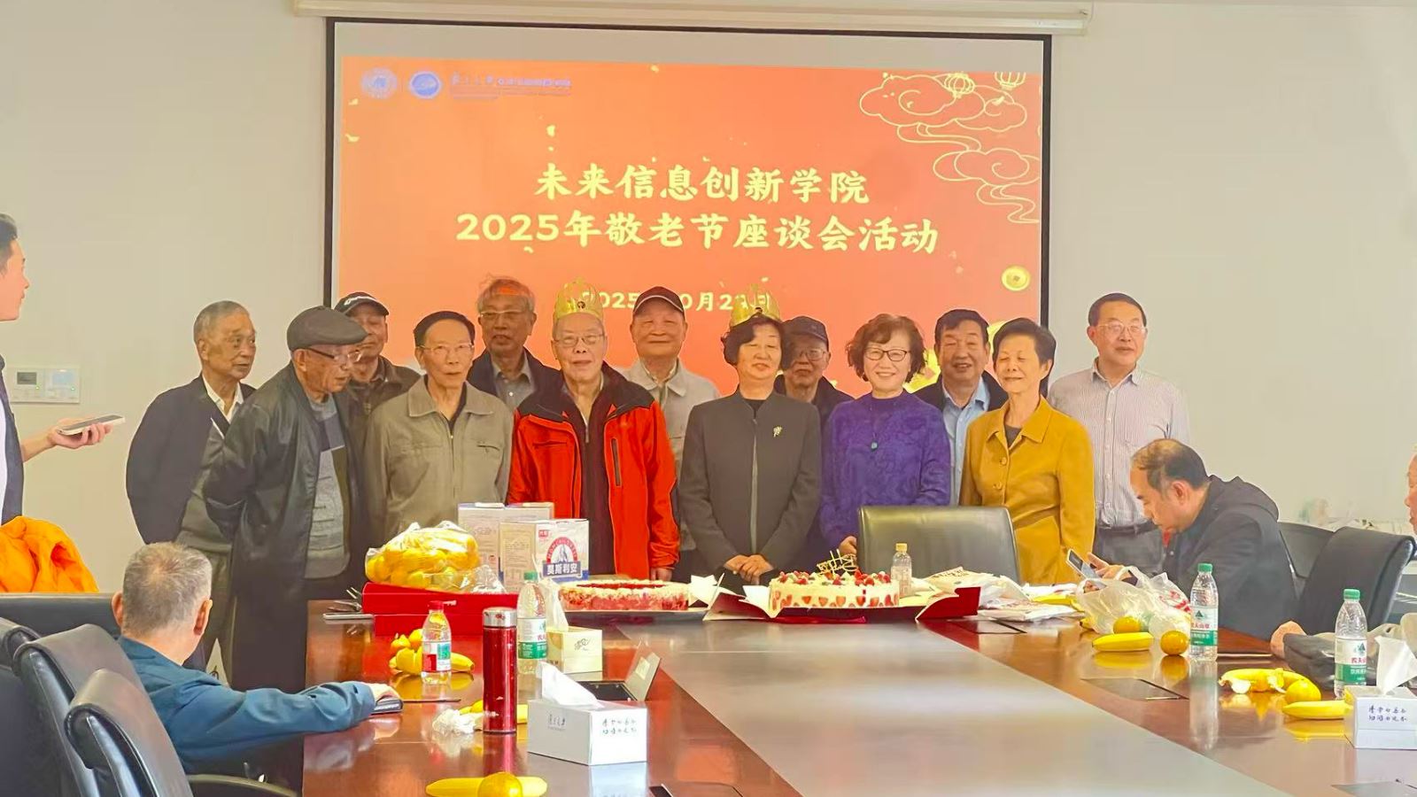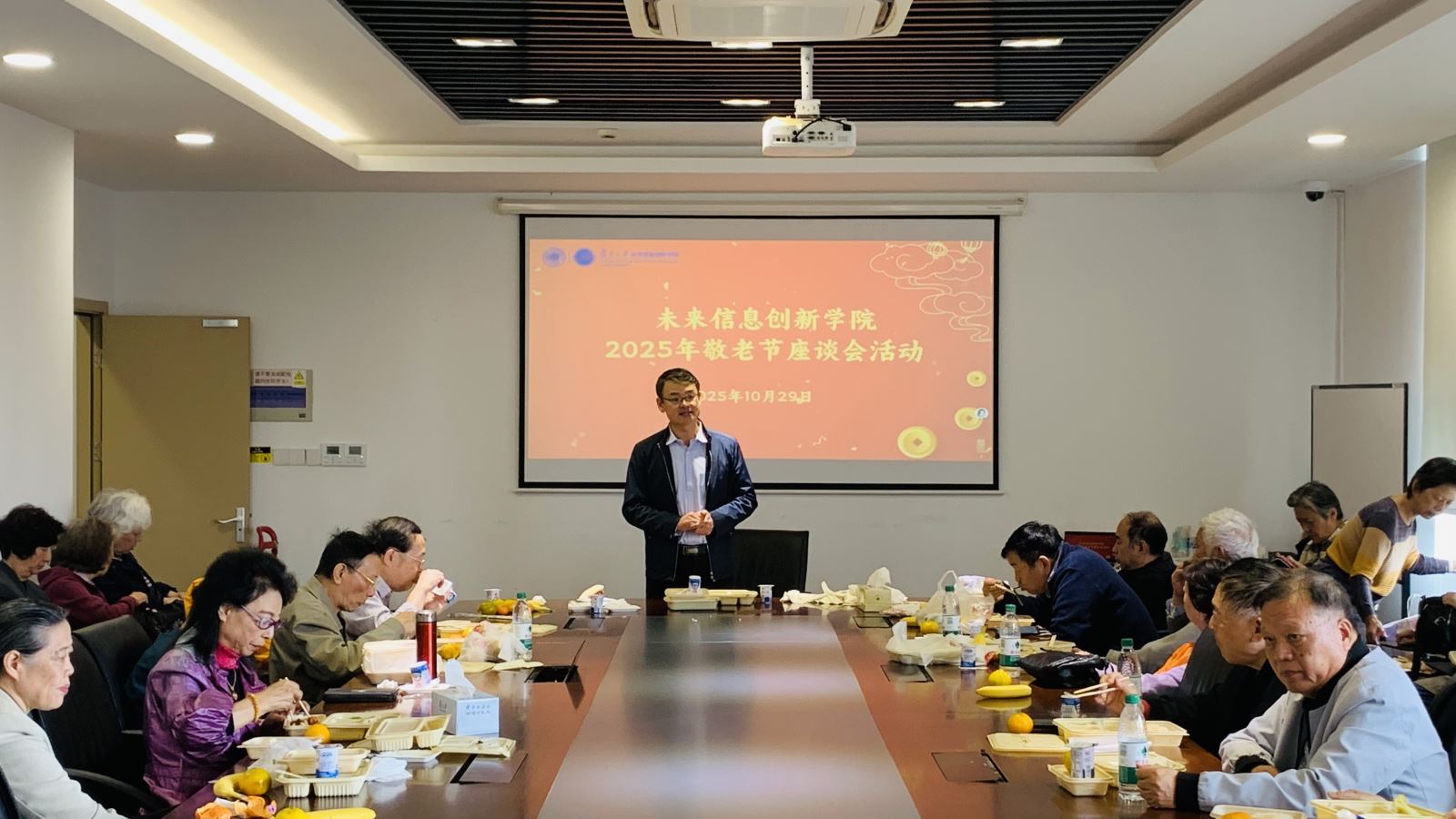 “美好人间十月天,秋意浓浓心相连”,10月29日重阳节当天,未来信息创新学院在邯郸校区恒隆物理楼537会议室、光学楼303会议室、旦苑食堂举办2025年学院敬老节座谈会暨逢五逢十生日会活动。此次活动共有80位退休教职工参加。学院党委书记徐阳、副书记程翀、光科教研室副主任李晶、电科教研室副主任李旦等出席活动。